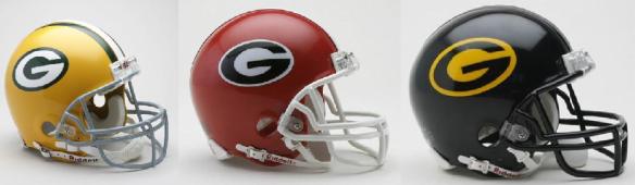 In case you were wondering which team first sported the elongated G the Green Bay Packers are wearing on their helmets tonight, the answer is the Green Bay Packers, who started using it in 1961 and, further according to the internet, trademarked the symbol and licensed it to the University of Georgia in 1964 and Grambling University after that.