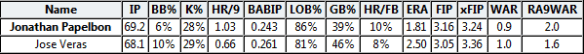 “That’s Veras and Papelbon, side by side, over the last calendar year. Papelbon’s long term track record is much better, but over the last 365 days, they’ve basically been equals.”