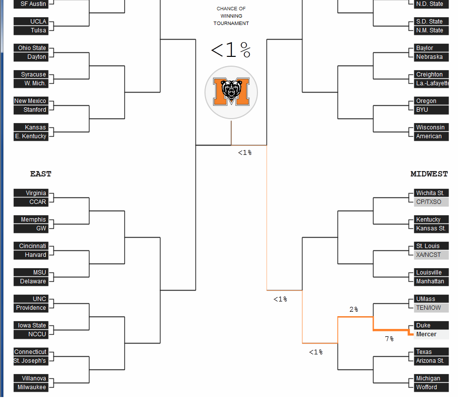 Point shaving is a federal crime, and sports gambling, like just about everything else, is a regulated activity. To say that the NCAA’s brochure clearly parses people’s obligations under the law, as compared with their obligations under the NCAA’s rules is as much of an understatement as Mercer is an underdog to win the NCAA tournament. Take a look at the full brochure layout and see if you agree.