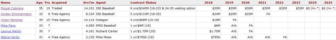 (Click here for an expanded view. Not pictured: Sanchez buyout ($5 million in 2018); Verlander share ($16 million across 2018-19); Prince Fielder share ($18 million across 2018-20).)