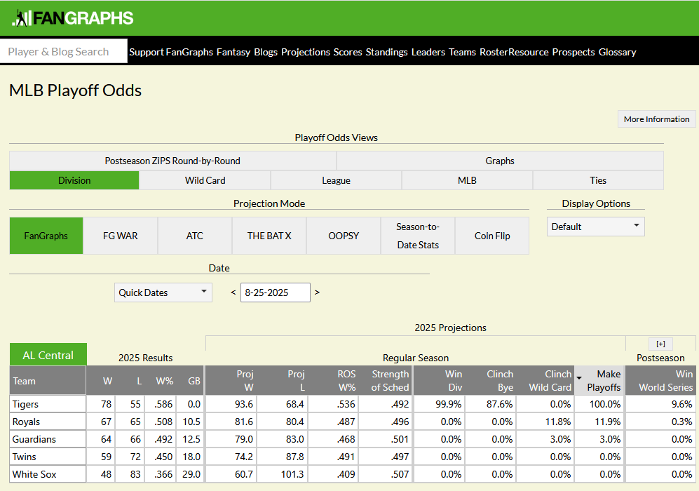 What is this nonsense? Last week, Baseball Prospectus’ PECOTA declared it a one-hundred-percent certainty that the Detroit Tigers would appear in the 2025 MLB playoffs. Today, though, the ostensible gold standard in baseball-projection machines has engaged in a very unfortunate bit of retrenchment: