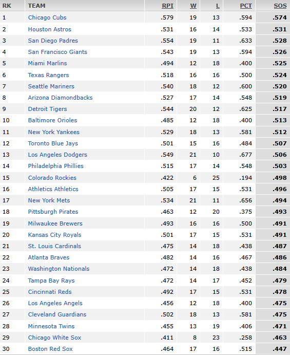 Some bitter Cleveland fans pointed out that Detroit has notched all of those wins while playing a lot of teams with sub-.500 records. That may be true. I don’t know. I do know that, according to ESPN, the Tigers overall have faced the tenth-toughest opponent schedule to date, while the rest of the AL Central has been coasting on cupcakes:
