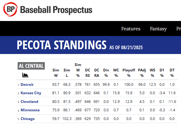 Regardless, postseason eligibility depends on standings, and standings depend only on wins, and wins are wins, and the Tigers now have twenty wins in a month’s worth of games that even PECOTA and ZiPS can’t ignore. As a result, those playoff odds have skyrocketed. BP is up from 19.9% to 61.1%, and FanGraphs is up from 43.6% to 81.1%!