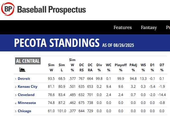 But BP’s PECOTA conceded none of that reasonable skepticism. It said this final outcome was a guaranteed certainty; no hedge, error margin, or other reservation of any kind. Presumably, it knew that Skubal could have a bad night, Baez could turn back into a pumpkin, and Jack Flaherty could continue to melt down, but it said it was not concerned. Having crossed that triple-digit threshold of certitude, it probably did not love what it saw in Sacramento last night, but one envisioned PECOTA taking that on the chin with an unwavering forward stare into a known and unavoidable future.