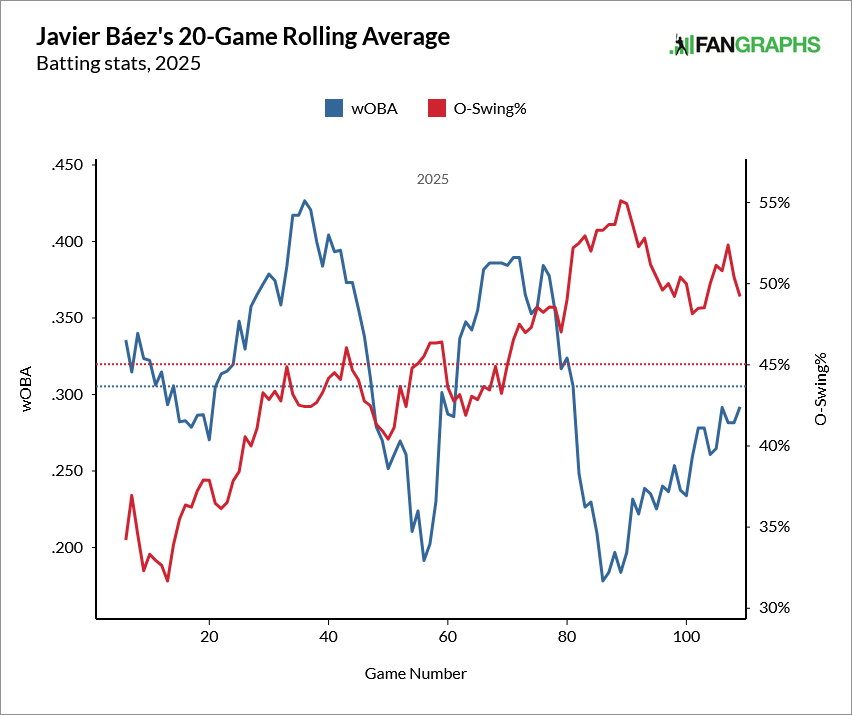 To be sure, I would not blame anybody for downgrading Detroit after Tarik Skubal surrendered a grand slam during a five-run seventh inning that ignominiously crowned a Tigers loss last night to a vagrant team playing in a minor-league park. Far from the August heater the team generated to fuel their run to the 2024 postseason, however, these Tigers have struggled in the second half with the likes of the Twins, Pirates, and A’s in a manner belying a true talent level perhaps somewhere below their overall winning percentage. And Javy Baez doing that bad thing again feels like a microcosm of team-wide regression trends in action: