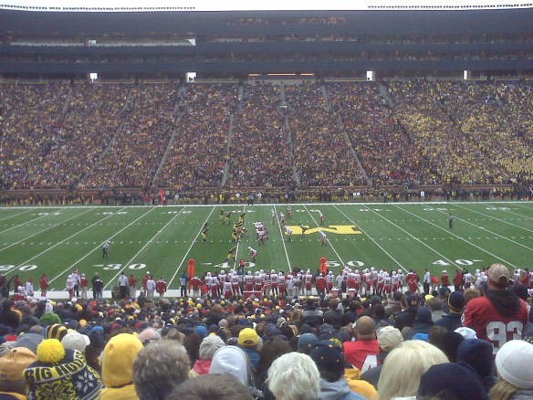 One quibble I had with the Michigan fans’ assessment of their opponent’s struggles on the day and mixed results in the conference this season was their comparison of Nebraska to Penn State when the latter became the Big Ten’s eleventh team in 1990 and, despite prior success, struggled in its first few years in the conference. The important difference the Nebraska comparison ignores is that PSU had been independent prior to joining the Big Ten, while Nebraska had been a member of the Big XII. I buy the argument that Penn State’s early difficulties were due to adjusting to playing competitive teams every week, rather than the mixed schedule of an independent school. In Nebraska’s case, the Big XII may be down, but it’s conference schedule isn’t comparable to that of an independent. Moreover, Nebraska’s conference play this year really has been mixed, rather than down. They certainly had trouble with road games against Wisconsin and this one against Michigan, and they lost at home to Northwestern, but they also dominated Michigan State. I’d say the jury’s still out on Big Ten Nebraska, and if they end up having a hard time, I don’t think the Penn State analogy helps explain why.